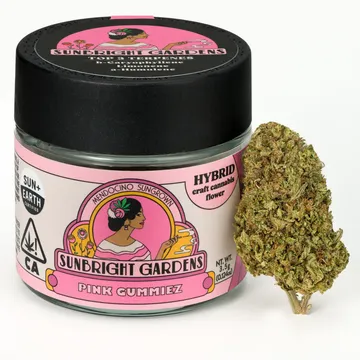 Pink Gummiez (SunBright Gardens) is an balanced hybrid bred from white gummy × team cream F2 lineage. The strain delivers a rich bouquet of sweet, fruity candy aromatics layered over pine, diesel, and tropical accents. Its dense, resinous buds glint with trichomes and carry deep forest green hues with hints of darker sugar leaves and orange pistils. In terms of effect, Pink Gummiez is known for producing a soothing body buzz that helps relieve tension and pain, while also maintaining a spark of mental creativity and bliss. It’s excellent for evening wind-downs, mellow moments, or whenever you want a flavorful, relaxing smoke.